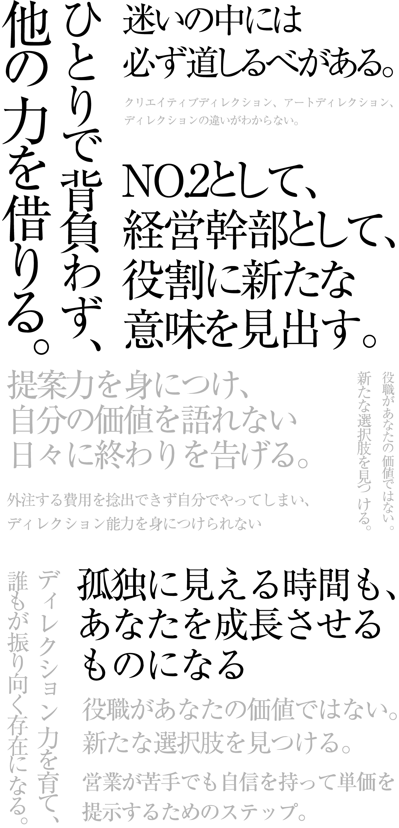 役職や肩書きに縛られず、自分の本当の価値を見つけるために一歩踏み出す勇気を持ってほしい。自分が「できない」と思っているその場所で、本当は何かを学んでいる最中だということもあれば、視点を変えることで見える景色が全く違ってくることもある。その過程で、あなたが今感じている迷いや葛藤を、私たちは一緒に乗り越えていきたい。