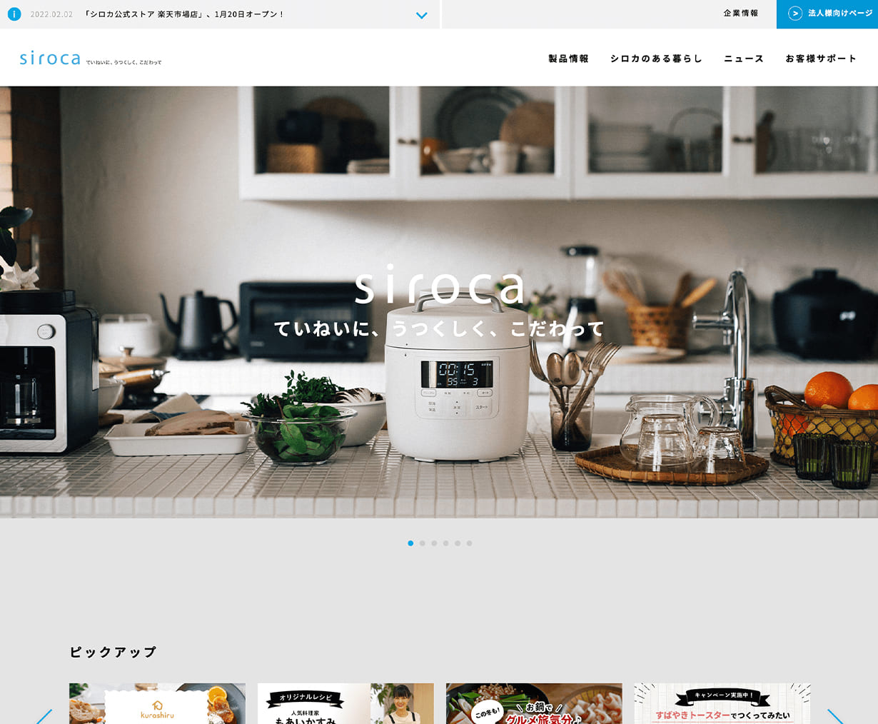 新たなブランドイメージとしての設計を行い、既存ファン以外へのsirocaの製品、企業イメージの認知と向上を目指し、コーポレートサイトのリニューアルを行いました。