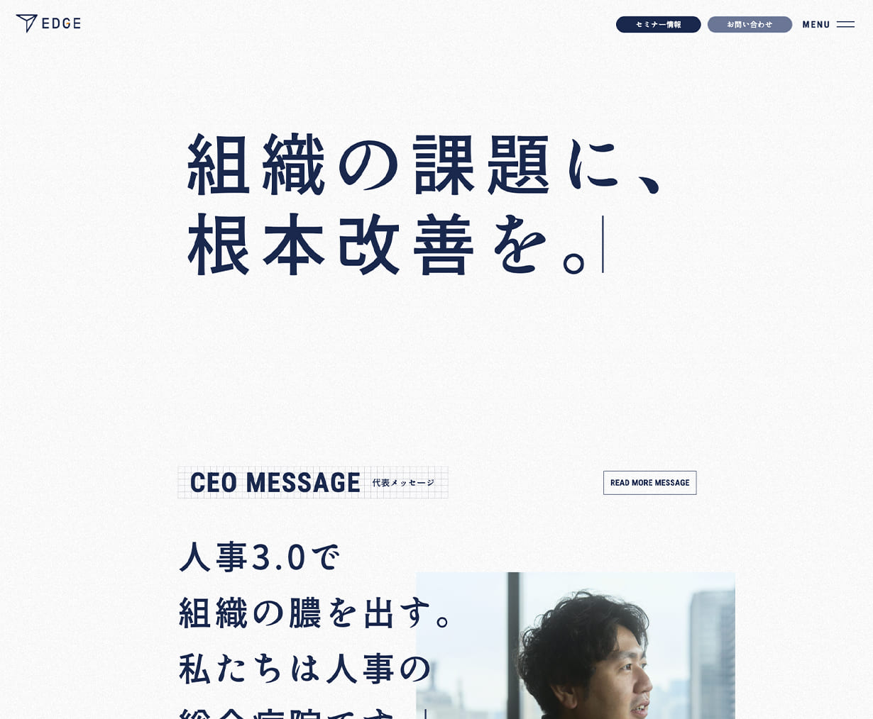 EDGE株式会社のコーポレートサイトのリニューアルを行いました。企業の在り方や手技をストレートに表現し、価値観の合致するステークホルダーを集めています。